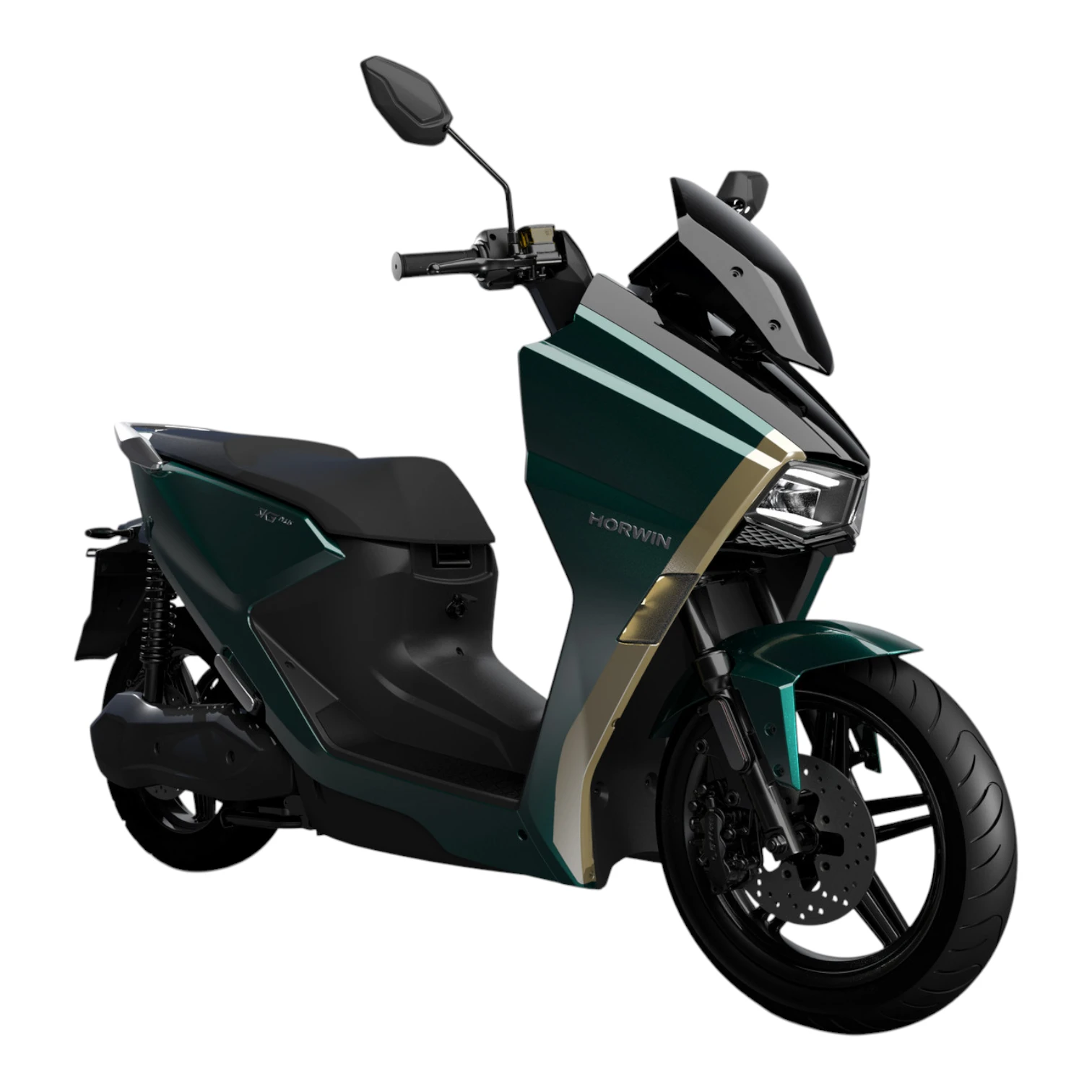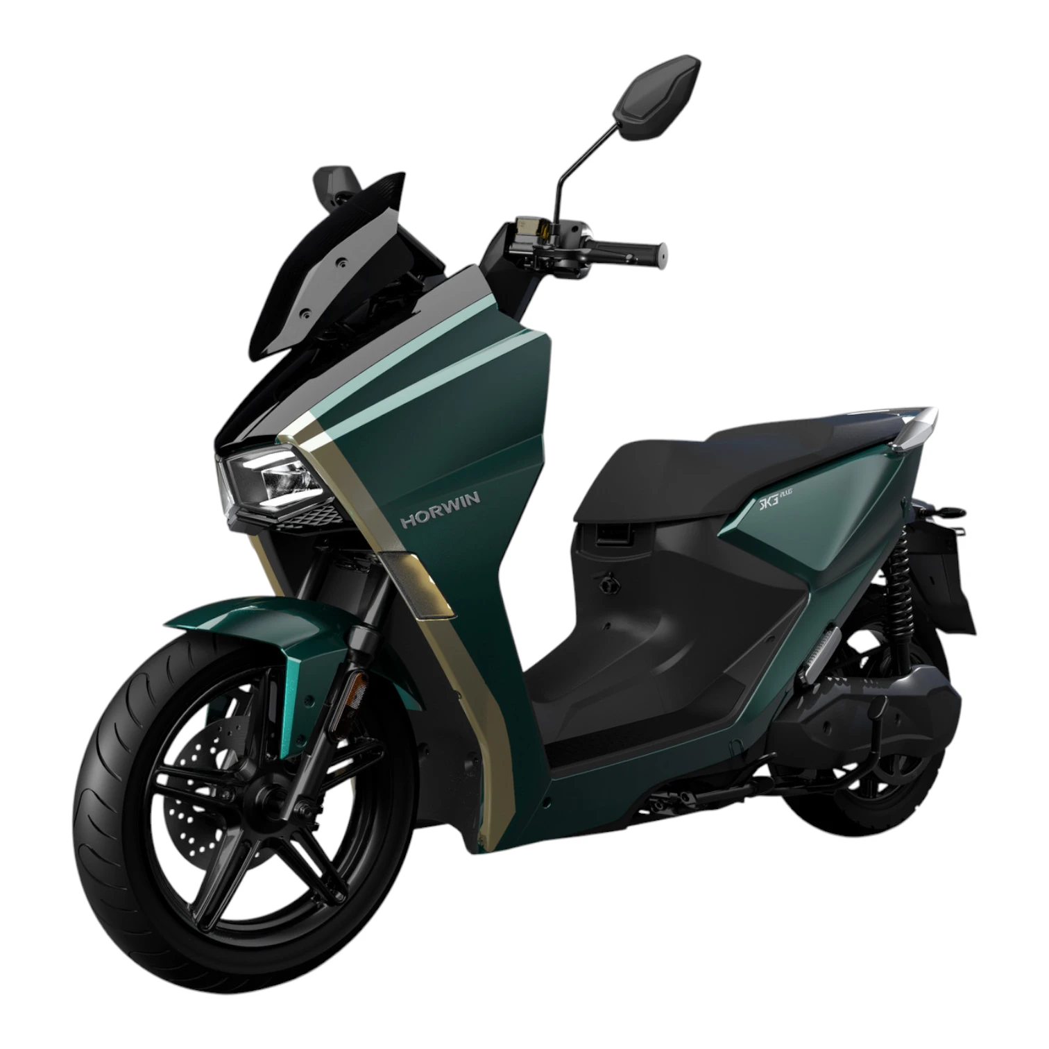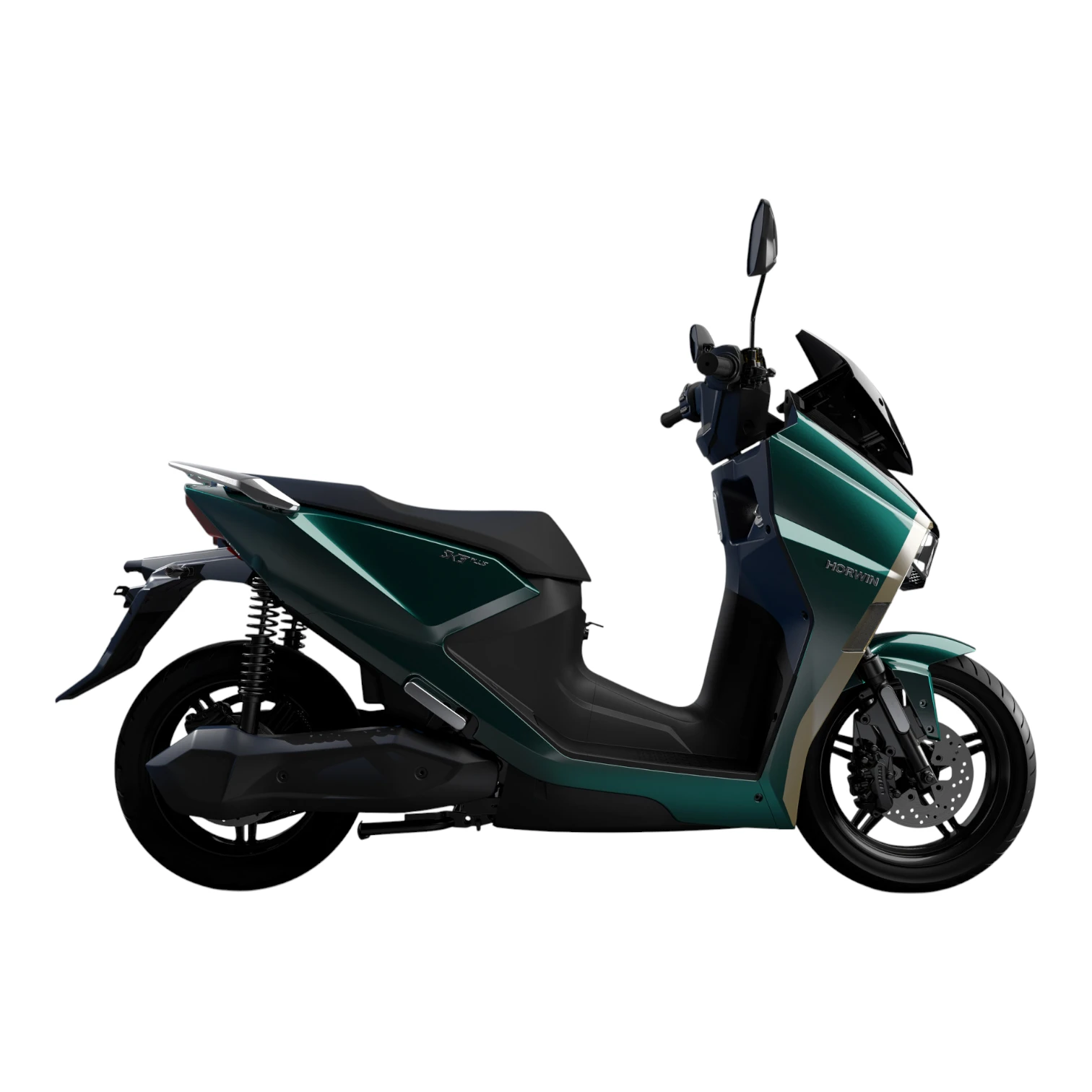 Der HORWIN SK3 Plus überzeugt durch sein sportliches und modernes Design sowie großzügige Fahrzeugmaße. Der leistungsstarke Centermotor beschleunigt den Roller auf bis zu 100 km/h und bietet damit höchste Fahrdynamik in der SK-Serie. Der serienmäßige 72 V / 45 Ah Akku zusammen mit dem zweiten Akku und Y-Kabel ermöglicht Reichweiten bis 150 km und flexible Einsatzmöglichkeiten. Die FOC-Steuerung sorgt für effiziente Energieverwaltung und schützt die Batterie vor Überlastung, Tiefentladung, Überspannung, Kurzschluss und Temperaturabweichungen.