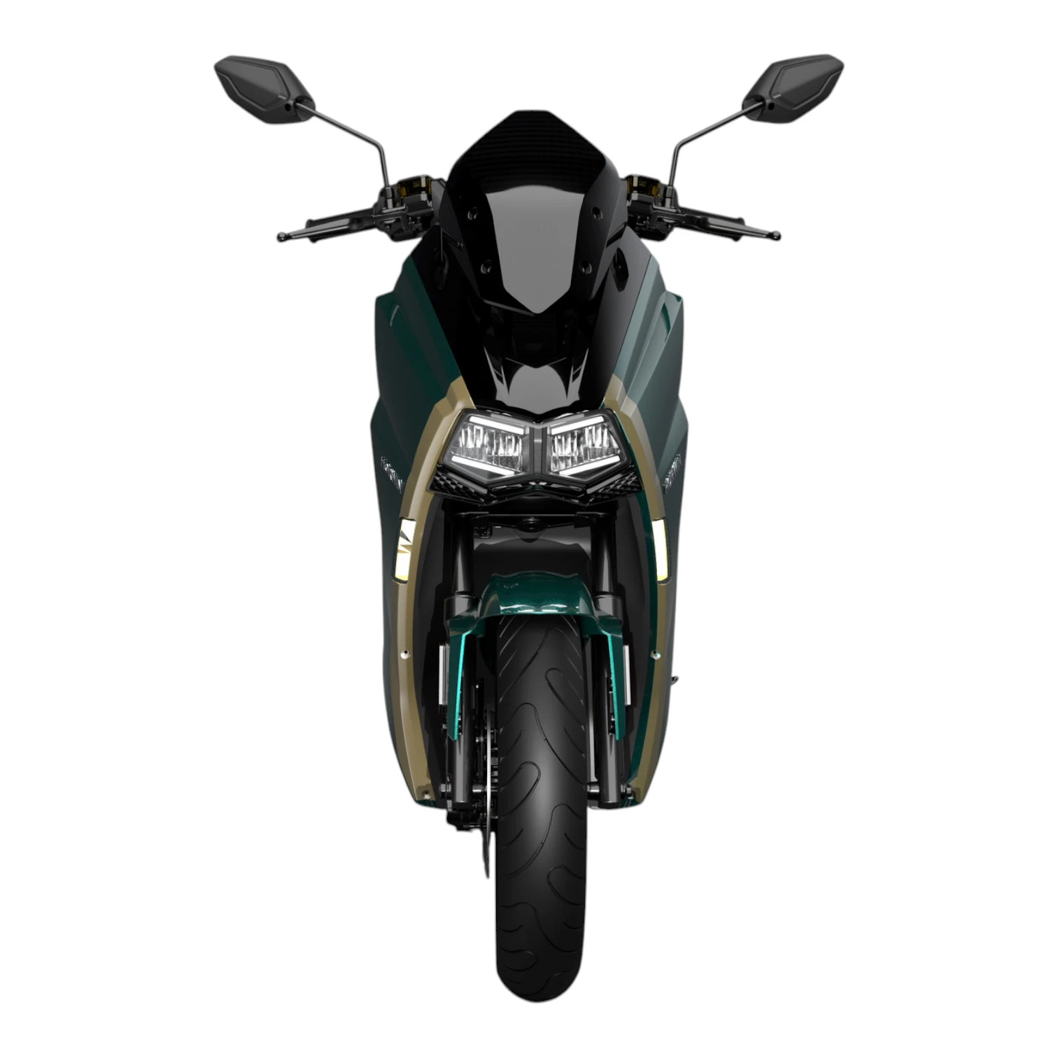 Das große Trittbrett und der ergonomische Sitz bieten entspanntes Fahren für Fahrer jeder Größe, während doppelte hydraulische Stoßdämpfer vorne und hinten ein sicheres und komfortables Fahrgefühl garantieren. Das CBS-Bremssystem sorgt für zuverlässige Bremsvorgänge auch bei hohen Geschwindigkeiten. Ist in folgenden Farben erhältlich: grau metallic, grün metallic und schwarz matt.