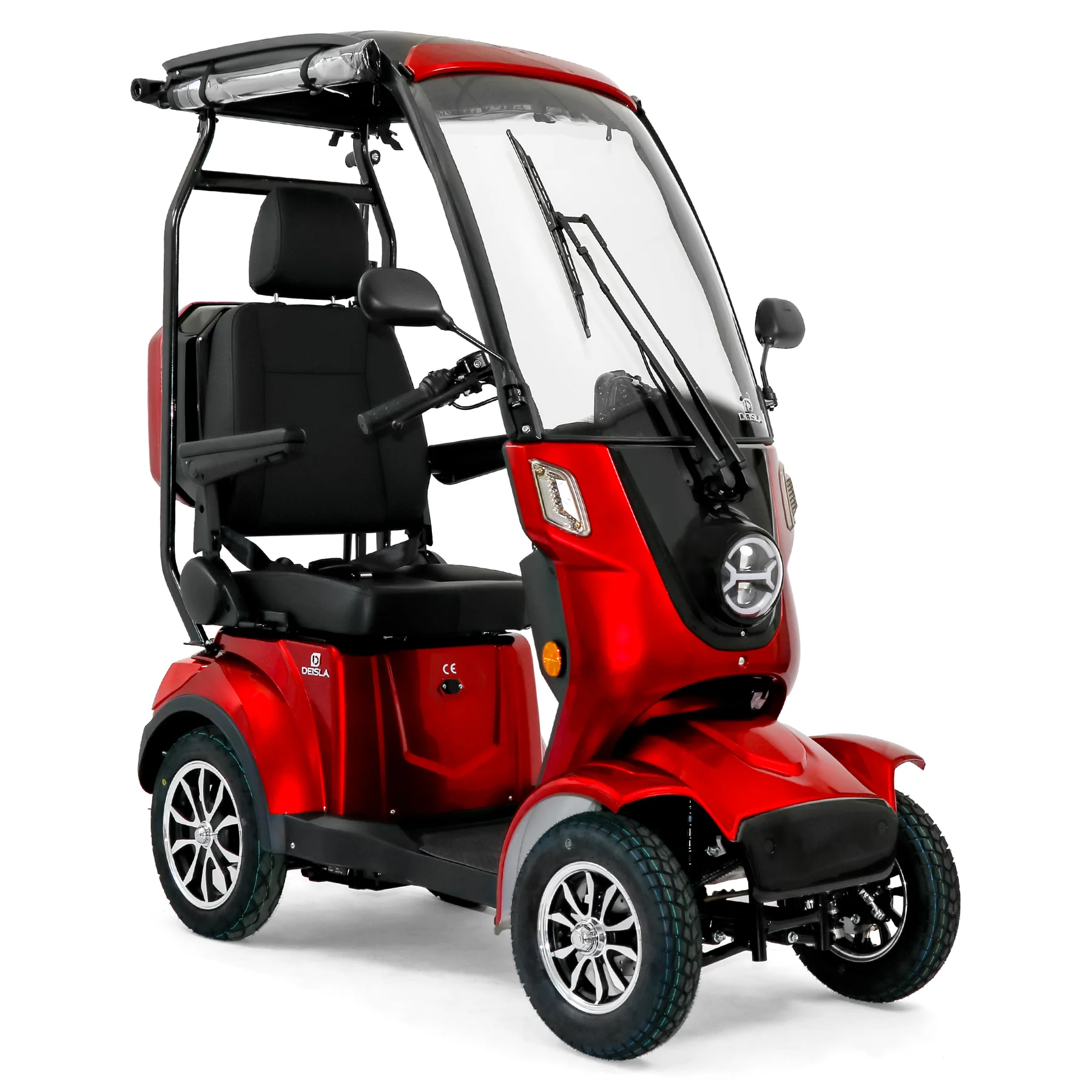 Das Deisla DS4-15 ist ein modernes Elektromobil für Senioren, das mit seiner Kombination aus Komfort, Sicherheit und Alltagstauglichkeit überzeugt. Mit einer Höchstgeschwindigkeit von 15 km/h eignet sich dieses Vierrad ideal für den Stadtverkehr, Fahrten auf Gehwegen oder entspannte Ausflüge in die Natur. Das Fahrzeug ist mit einem stabilen Dach, einer großen Frontscheibe mit automatischem Scheibenwischer und zusätzlichem Wetterschutz ausgestattet. Damit bleiben Sie bei Regen, Wind oder Sonne stets geschützt und genießen Ihre Fahrt in jeder Situation. Der leistungsstarke 1000 Watt Motor sorgt für eine zuverlässige Leistung, während der entnehmbare Lithium-Akku Reichweiten von bis zu 70 Kilometern ermöglicht. Geladen wird der Akku bequem direkt im Fahrzeug oder extern – ideal für den täglichen Einsatz. Für maximalen Komfort verfügt das Seniorenmobil über einen ergonomischen Sitz mit verstellbaren Armlehnen, Kopfstütze und Sicherheitsgurt. Zwei Rückspiegel, ein digitales Cockpit mit Farbanzeige und moderne LED-Beleuchtung sorgen für Übersicht und Sicherheit im Straßenverkehr. Zur Ausstattung gehören Bluetooth-Lautsprecher, ein USB-Anschluss, ein abschließbarer Heckkoffer sowie praktische Halterungen für Getränke und Gehhilfen. Drei wählbare Fahrstufen ermöglichen eine individuelle Anpassung an die jeweilige Fahrsituation. Das Deisla DS4-15 wird zu 95 Prozent vormontiert geliefert, lediglich die Spiegel müssen noch angebracht werden. Über das Portal e-move24 können Sie das Elektromobil auch per Click & Collect bestellen. Dabei wird das Fahrzeug beim Fachhandelspartner fahrbereit aufgebaut und kann direkt abgeholt werden. Die Partnerhändler übernehmen ebenfalls den After-Sales-Service. Probefahrten sind nur bei ausgewählten Partnern möglich – bitte fragen Sie vorab telefonisch nach, ob ein Probefahrzeug verfügbar ist.