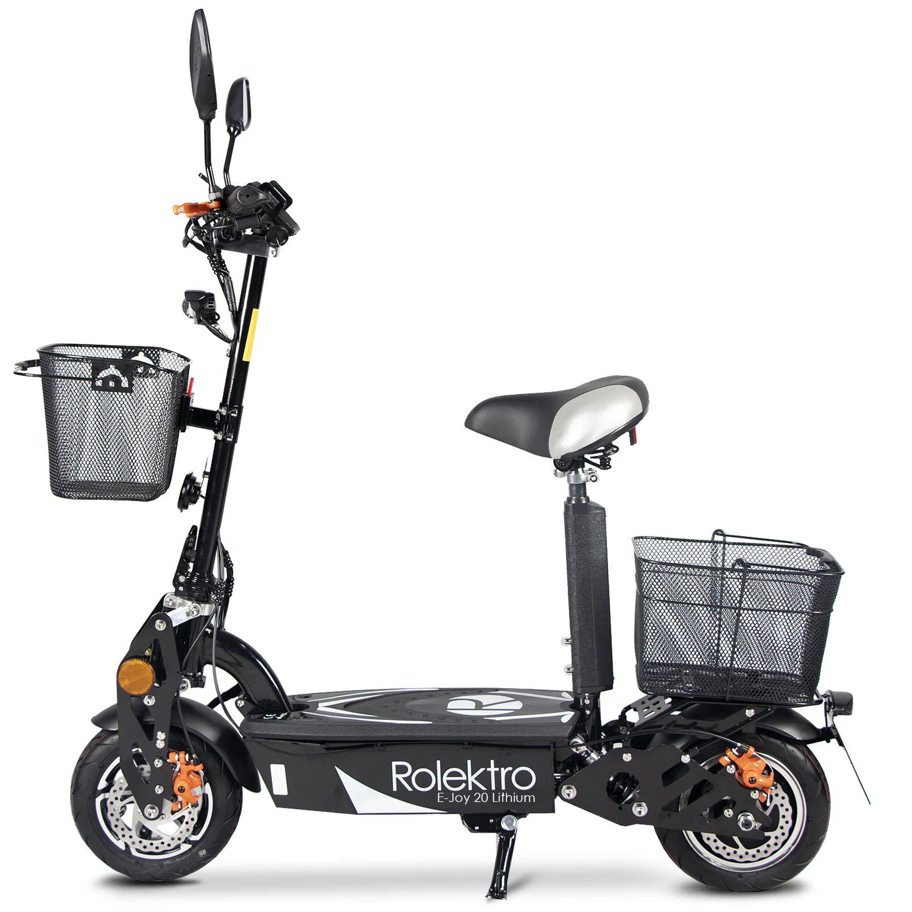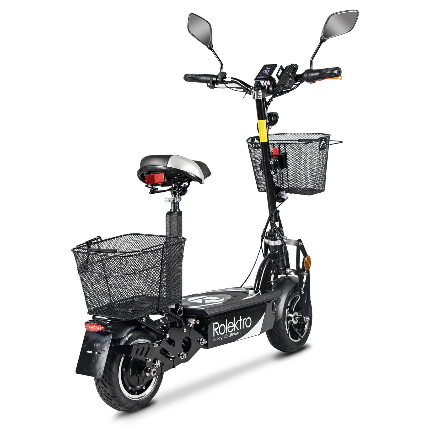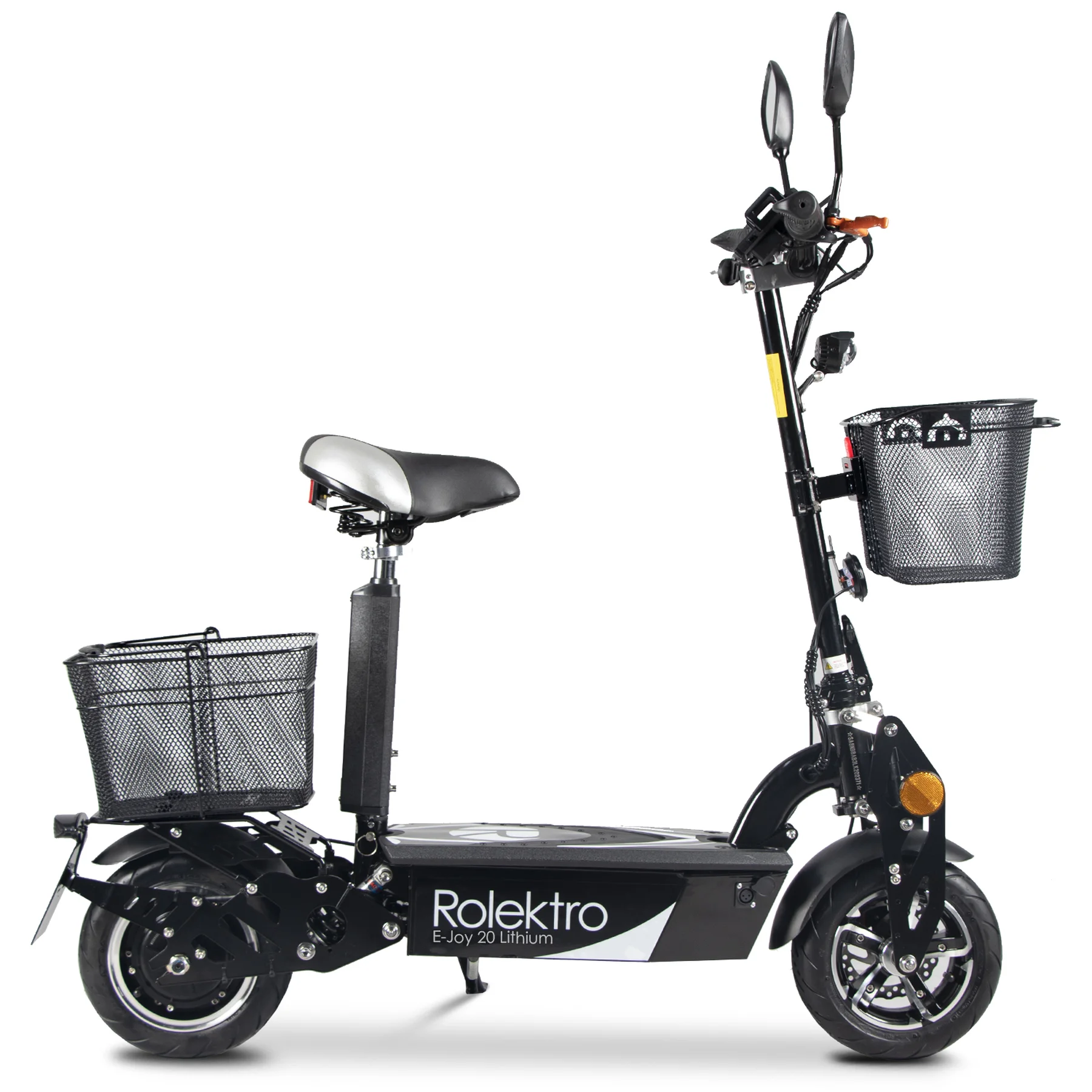 Der neue Elektro-Scooter Rolektro E-Joy 20 ist ein umweltfreundliches, faltbares Fahrzeug auf zwei Rädern, das sich dank seiner kompakten Bauweise auch problemlos im Auto transportieren lässt. Der robuste E-Scooter für Erwachsene bietet ein leises, sicheres und kostengünstiges Fahrerlebnis im Nah- und Mittelbereich und vereint Fahrsicherheit, Komfort und Fahrfreude auf einzigartige Weise. Der E-Joy 20 erreicht eine Höchstgeschwindigkeit von 20 km/h und wird von einem 500 W Hinterrad-Nabenmotor angetrieben. Durch den Verzicht auf Kette und Ritzel spart der Roller nicht nur Kosten für Verschleißteile, sondern bietet auch eine höhere Zuverlässigkeit und einen stärkeren Durchzug. Ausgestattet mit einer modernen 36 V / 20 Ah Lithium-Batterie erreicht der faltbare E-Roller eine Reichweite von bis zu 45 km. Der Akku kann sowohl im Scooter selbst als auch extern geladen werden und ist herausnehmbar, sodass das Aufladen bequem in der Garage, Wohnung oder im Haus erfolgen kann. Dank Spritzwasserschutz ist der Roller auch bei Regen fahrbereit. Der E-Joy 20 wird voll ausgestattet geliefert und enthält zwei praktische Körbe, eine Handyhalterung, die Akku-Box sowie das Ladegerät. Hochwertige LED-Leuchten sorgen für gute Sicht bei minimalem Stromverbrauch. Die eingebauten Stoßdämpfer vorne und hinten gewährleisten Komfort auch auf leicht unebenen Straßen, während die beiden Körbe insgesamt etwa 30 Liter Stauraum bieten – ideal für Einkäufe oder kleine Transporte. Das digitale Tacho-Display zeigt Geschwindigkeit, Kilometerstand und Ladezustand an. Über das Portal e-move24 per Click & Collect zu bestellen. Ihr Fahrzeug wird dabei beim Fachhandelspartner fertig aufgebaut und kann direkt abgeholt werden. Die Partner übernehmen auch den After-Sales-Service. Bitte beachten Sie, dass nicht alle Click & Collect-Partner Probefahrzeuge vor Ort haben. Wer eine Probefahrt machen möchte, sollte vorab telefonisch prüfen, ob das gewünschte Modell verfügbar ist.