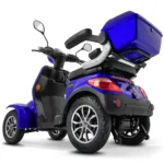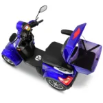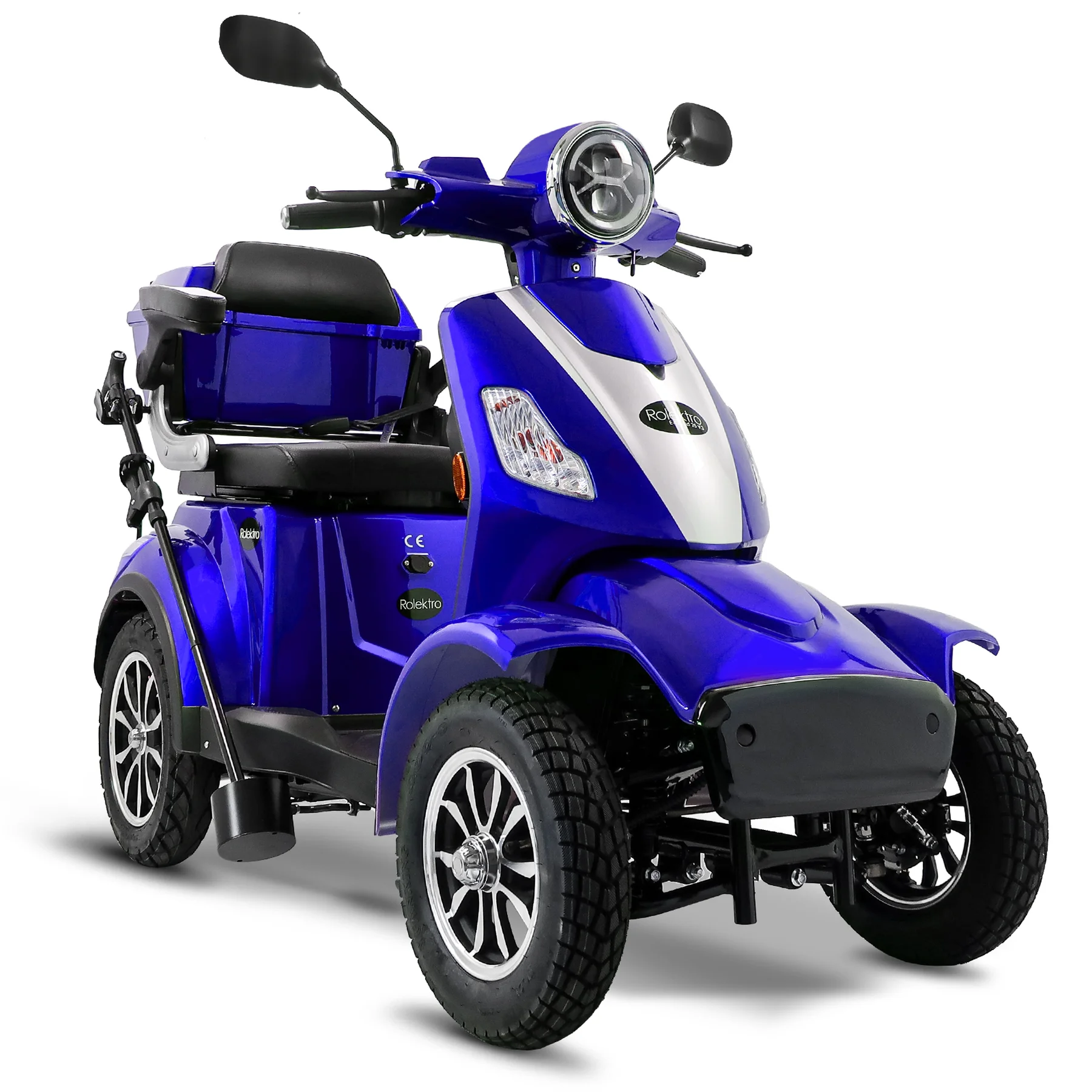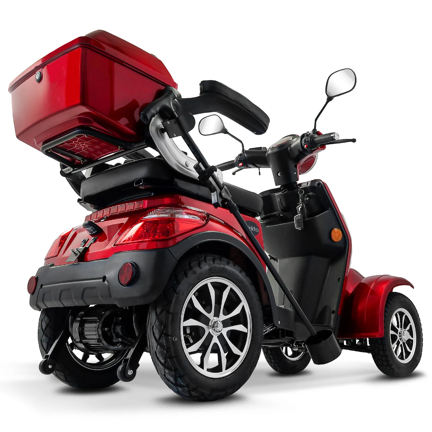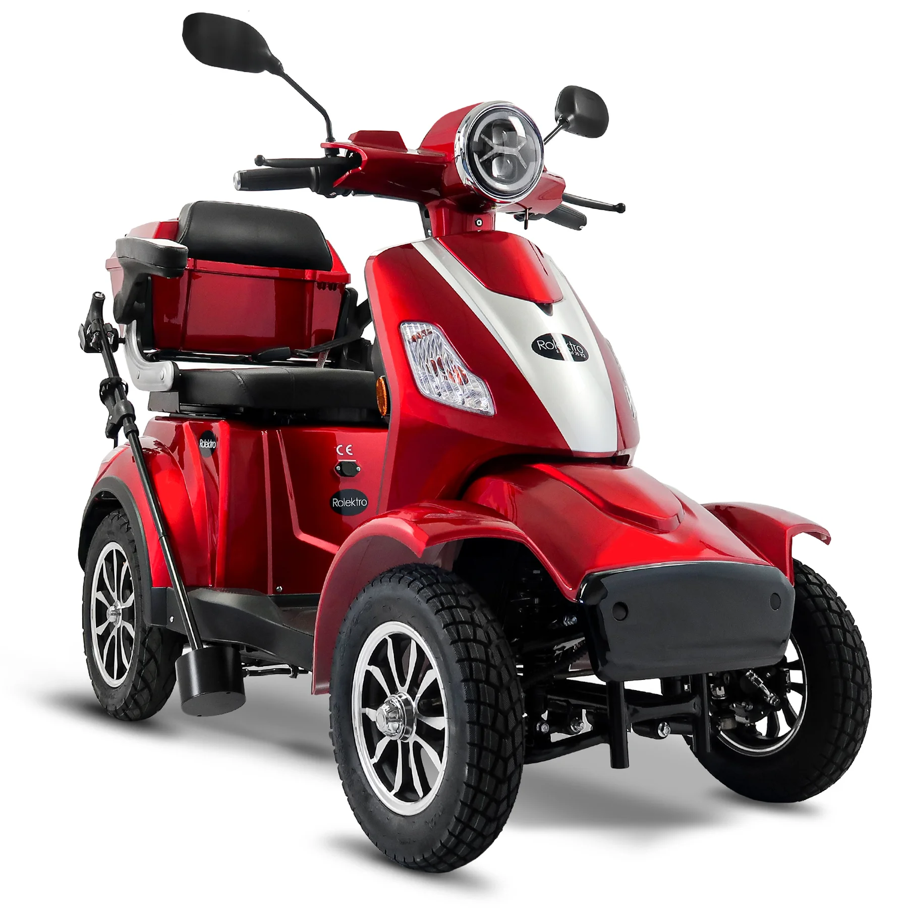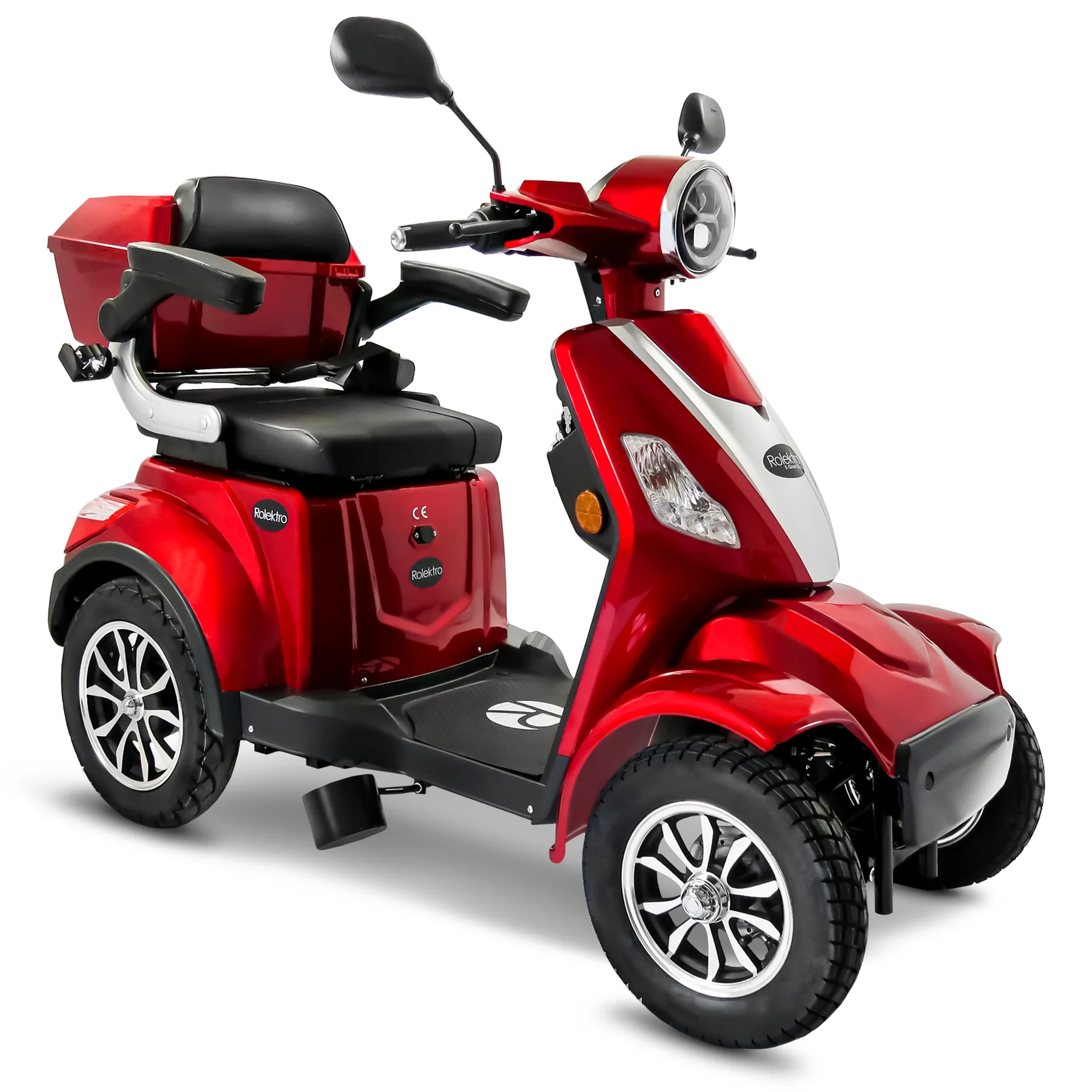 Das Rolektro E-Quad 25 V.3 Premium ist ein vierrädriges Elektromobil der neuesten Generation, das für Komfort, Sicherheit und Alltagstauglichkeit entwickelt wurde. Mit europäischer Straßenzulassung, robustem Stahlrohrrahmen und leistungsstarkem 1000 Watt Motor erreicht es eine Höchstgeschwindigkeit von bis zu 25 km/h und ist ideal für Senioren, Menschen mit eingeschränkter Mobilität sowie für den städtischen Einsatz. Ausgestattet mit einem herausnehmbaren 60V-30Ah Lithium Akku erreicht das E-Quad eine Reichweite von bis zu 80 Kilometern. Der ergonomische Kapitänssitz bietet eine hohe Rückenlehne, klappbare Armlehnen und eine Kopfstütze. Ein integrierter Sicherheitsgurt schützt zusätzlich. Für ein sicheres Fahrverhalten sorgen eine Einzelradaufhängung vorne, zwei Stoßdämpfer hinten, Scheibenbremse vorne, Trommelbremse hinten und eine Feststellbremse am Lenker. Die Steigfähigkeit von bis zu 12 Prozent ermöglicht auch das Befahren von leichten Steigungen. Eine Windschutzscheibe schützt vor Fahrtwind, Insekten und Schmutz. USB-Ladebuchsen und praktische Ablagefächer unter dem Sitz sowie ein abschließbares Topcase bieten zusätzlichen Komfort und Stauraum. Das digitale Farbdisplay informiert zuverlässig über Geschwindigkeit, Akkustand, Gesamtkilometer und weitere Fahrzeugdaten. Das Batteriemanagementsystem (BMS) liefert präzise Ladeinformationen. Eine Alarmanlage mit Fernbedienung sorgt für zusätzlichen Diebstahlschutz. Das E-Quad ist in den Farben Rot, Blau und Schwarz erhältlich. Das Fahrzeug kann über unser Portal e-move24 per Click & Collect bestellt werden. Dabei wird das Fahrzeug beim Fachhandelpartner fertig aufgebaut abgeholt, der auch den After-Sales-Service übernimmt. Nicht alle Click & Collect-Partner haben Probefahrzeuge vor Ort – wer eine Probefahrt machen möchte, sollte gezielt nach Verkaufspunkten mit Probefahrtmöglichkeit suchen und vorab telefonisch die Verfügbarkeit prüfen.