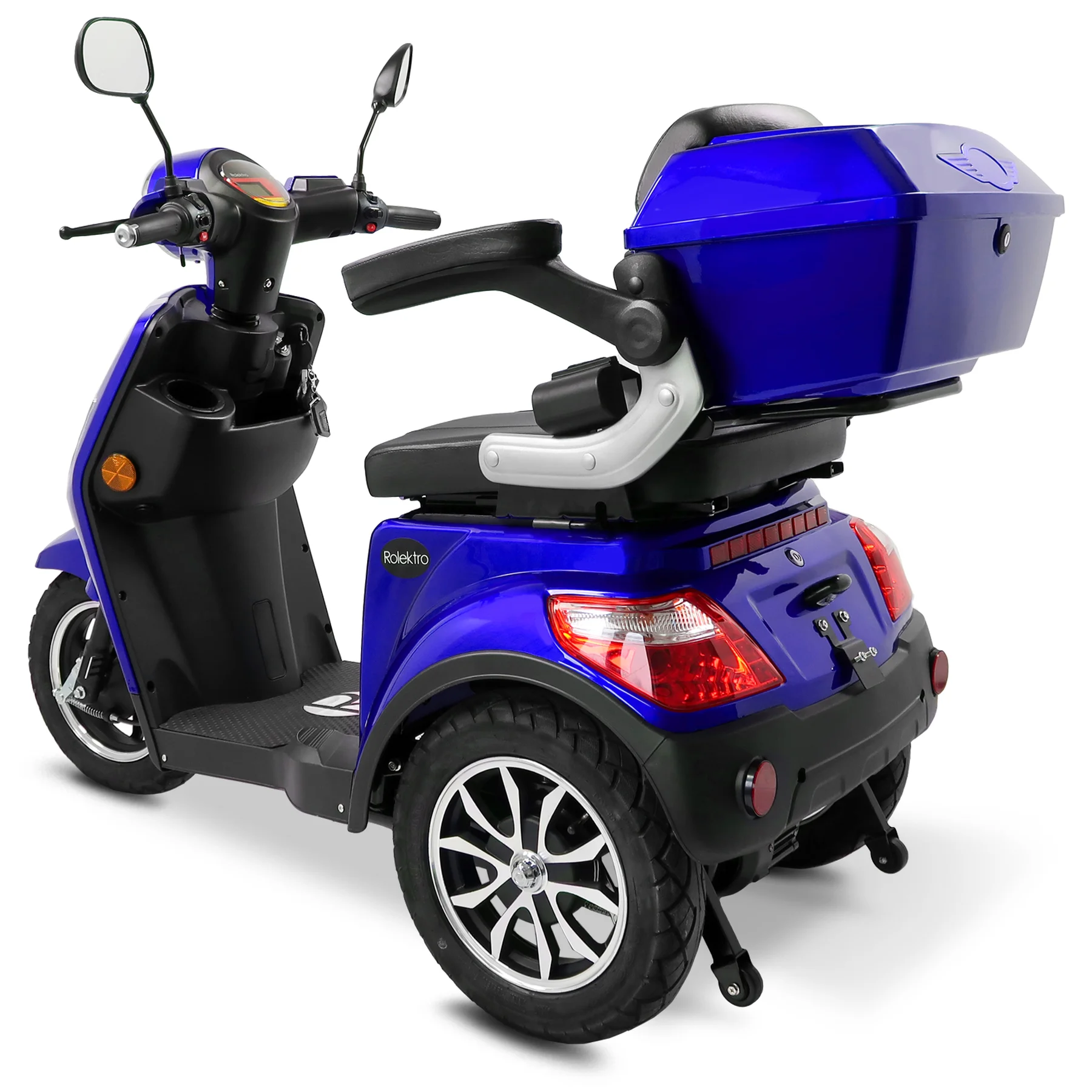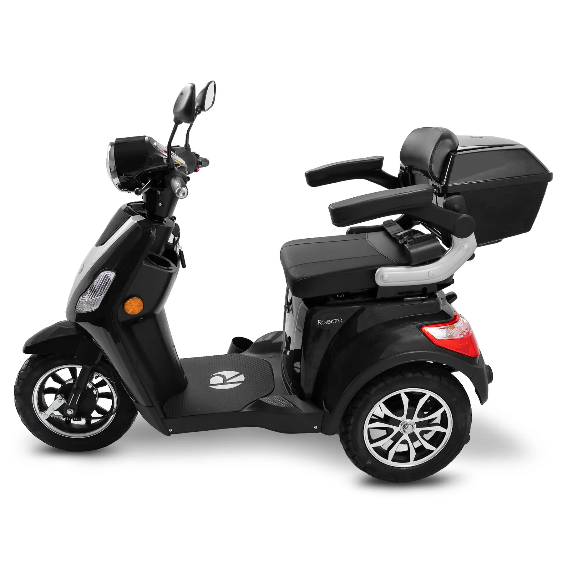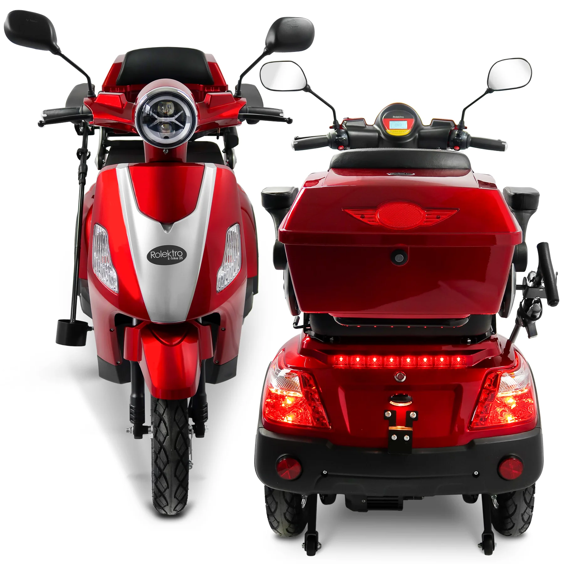 Das Rolektro E-Trike 25 V.3 Lithium ist das ideale Elektromobil für Menschen, die mobil bleiben möchten, aber Wert auf Komfort, Sicherheit und moderne Technik legen. Dieses Dreirad verbindet ergonomisches Design mit leistungsstarker Ausstattung und deutscher Qualitätskontrolle. Mit drei einstellbaren Geschwindigkeiten 6 kmh, 12 kmh und 25 kmh können Sie die Fahrt entspannt oder zügig gestalten. Der Rückwärtsgang erleichtert das Manövrieren in engen Bereichen. Der Sitz ist verstellbar und verfügt über Armlehnen sowie Stauraum unter dem Sitz. Vollfederung sorgt für sanftes Fahren auf allen Untergründen. Das E-Trike 25 V.3 ist mit einem 1000 Watt Motor ausgestattet und erreicht eine Reichweite von bis zu ca. 75 km. Der wechselbare Lithium Akku 60V-30AH kann sowohl intern als auch extern geladen werden, was bequemes Laden in Wohnung, Büro oder unterwegs ermöglicht. Zu den Sicherheitsmerkmalen gehören Trommelbremsen, Anschnallgurt, Überrollschutz, LED-Abblend- und Fernlicht vorne sowie Bremslicht und Rücklicht hinten. Alle wichtigen Informationen wie Geschwindigkeit, Kilometerstand und Ladezustand werden am digitalen Tacho angezeigt. Über das neue Portal e-move24 kann das Fahrzeug ganz einfach per Click & Collect bestellt werden. Ihr Fachhändler übernimmt dabei den Aufbau und bietet After-Sales-Service. Bitte beachten: Nicht jeder Partner hat ein Probefahrzeug vor Ort – wer testen möchte, sollte vorab telefonisch nachfragen.