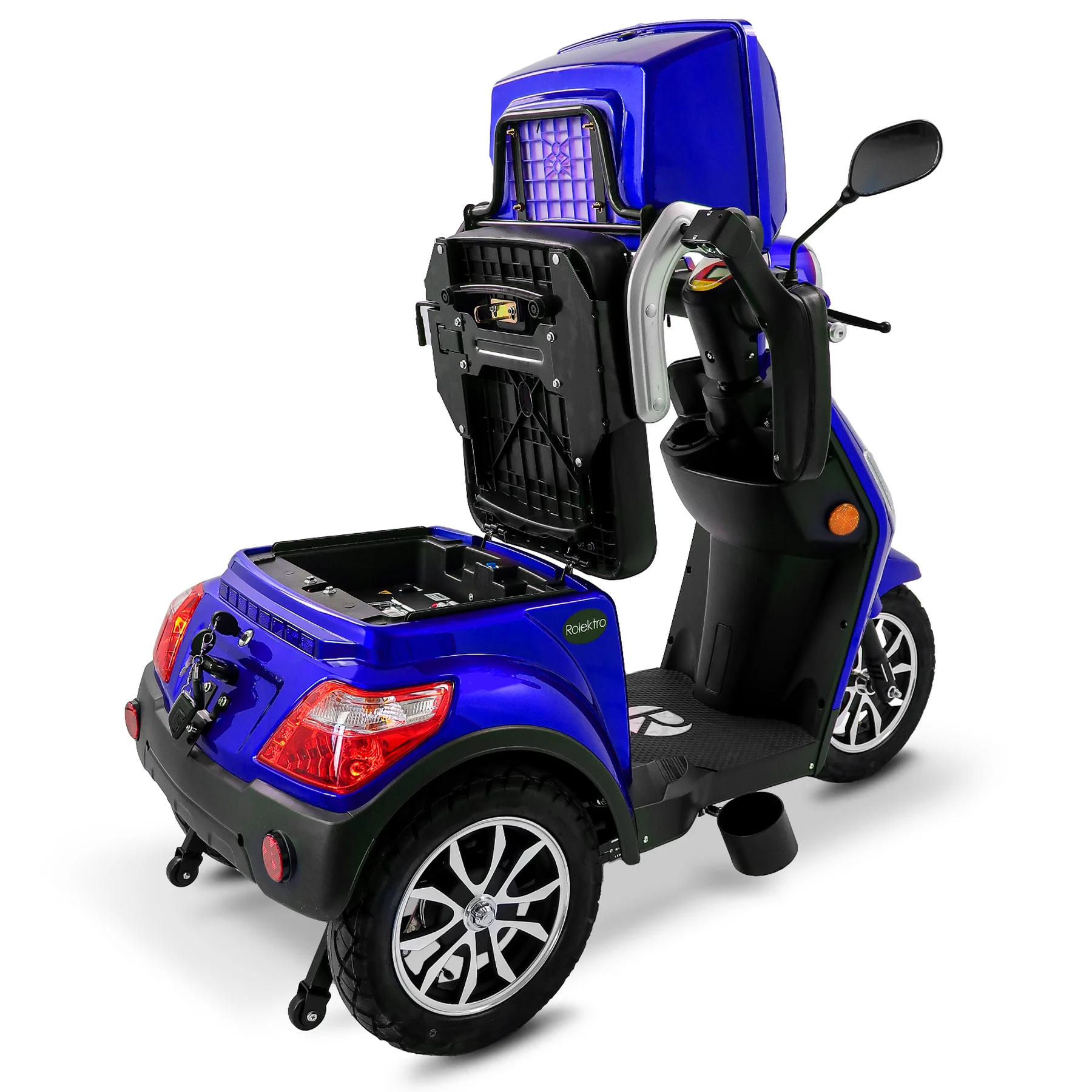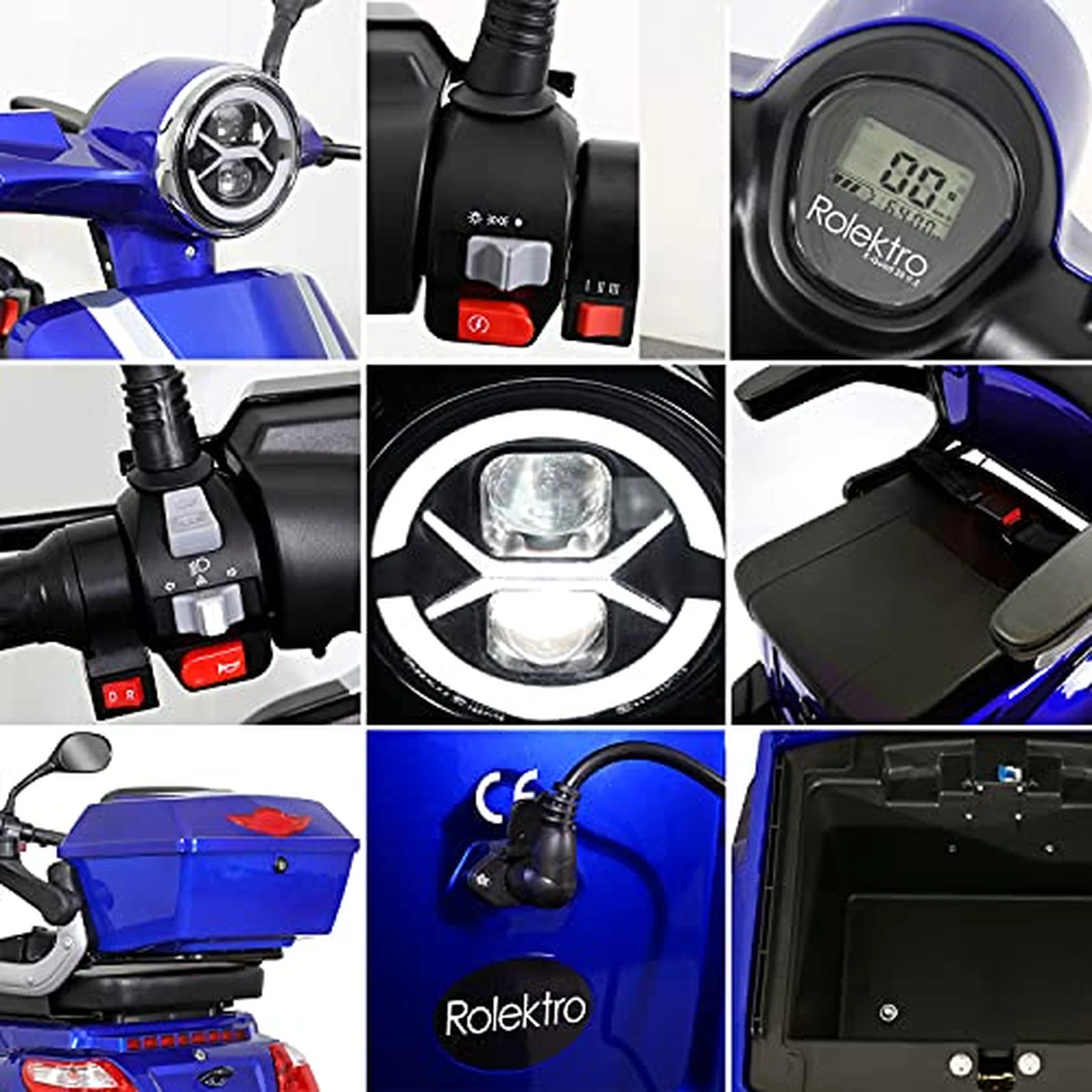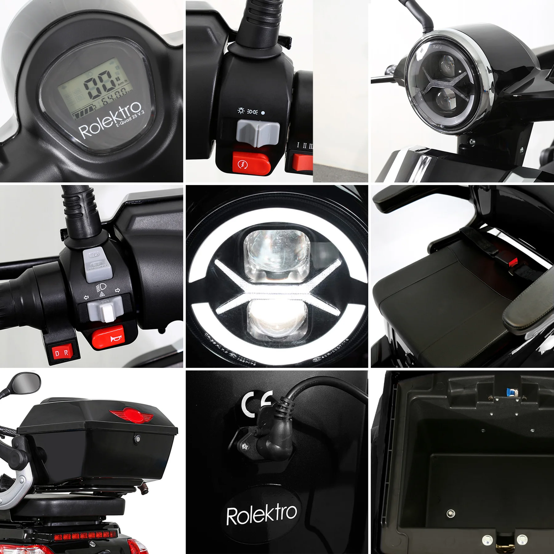 Das Rolektro E-Trike 25 V.3 Lithium ist das ideale Elektromobil für Menschen, die mobil bleiben möchten, aber Wert auf Komfort, Sicherheit und moderne Technik legen. Dieses Dreirad verbindet ergonomisches Design mit leistungsstarker Ausstattung und deutscher Qualitätskontrolle. Mit drei einstellbaren Geschwindigkeiten 6 kmh, 12 kmh und 25 kmh können Sie die Fahrt entspannt oder zügig gestalten. Der Rückwärtsgang erleichtert das Manövrieren in engen Bereichen. Der Sitz ist verstellbar und verfügt über Armlehnen sowie Stauraum unter dem Sitz. Vollfederung sorgt für sanftes Fahren auf allen Untergründen. Das E-Trike 25 V.3 ist mit einem 1000 Watt Motor ausgestattet und erreicht eine Reichweite von bis zu ca. 75 km. Der wechselbare Lithium Akku 60V-30AH kann sowohl intern als auch extern geladen werden, was bequemes Laden in Wohnung, Büro oder unterwegs ermöglicht. Zu den Sicherheitsmerkmalen gehören Trommelbremsen, Anschnallgurt, Überrollschutz, LED-Abblend- und Fernlicht vorne sowie Bremslicht und Rücklicht hinten. Alle wichtigen Informationen wie Geschwindigkeit, Kilometerstand und Ladezustand werden am digitalen Tacho angezeigt. Über das neue Portal e-move24 kann das Fahrzeug ganz einfach per Click & Collect bestellt werden. Ihr Fachhändler übernimmt dabei den Aufbau und bietet After-Sales-Service. Bitte beachten: Nicht jeder Partner hat ein Probefahrzeug vor Ort – wer testen möchte, sollte vorab telefonisch nachfragen.