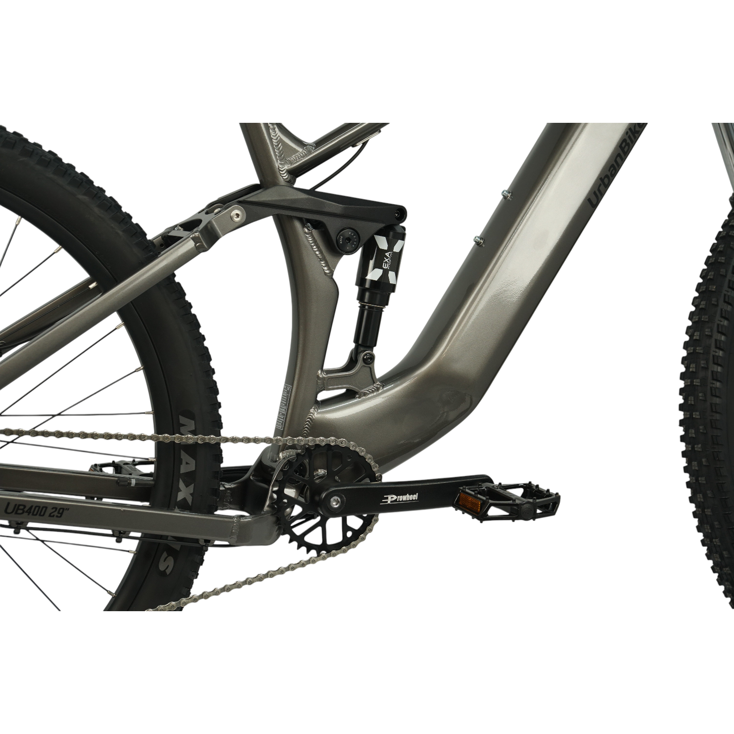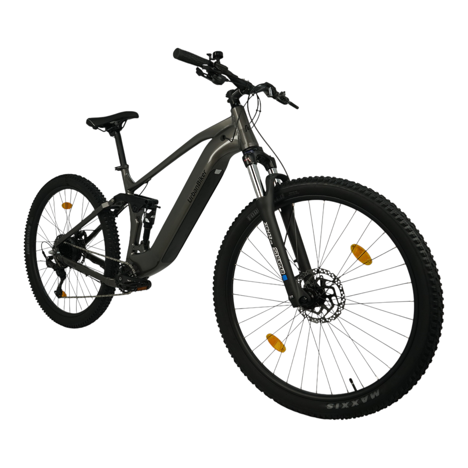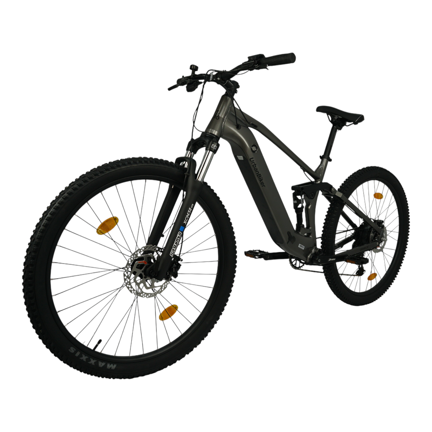 Das UB400 ist ein vollgefedertes E-Bike, das sportlichen Fahrspaß mit hohem Komfort verbindet. Ausgestattet mit einem kräftigen und leisen 250 Watt Bafang Heckmotor bietet es eine elektrische Unterstützung bis 25 km/h. Der integrierte 48 Volt Akku mit 720 Wattstunden Kapazität sorgt für Reichweiten bis zu 140 Kilometer im ECO-Modus und ist abnehmbar, abschließbar und leicht zu laden.